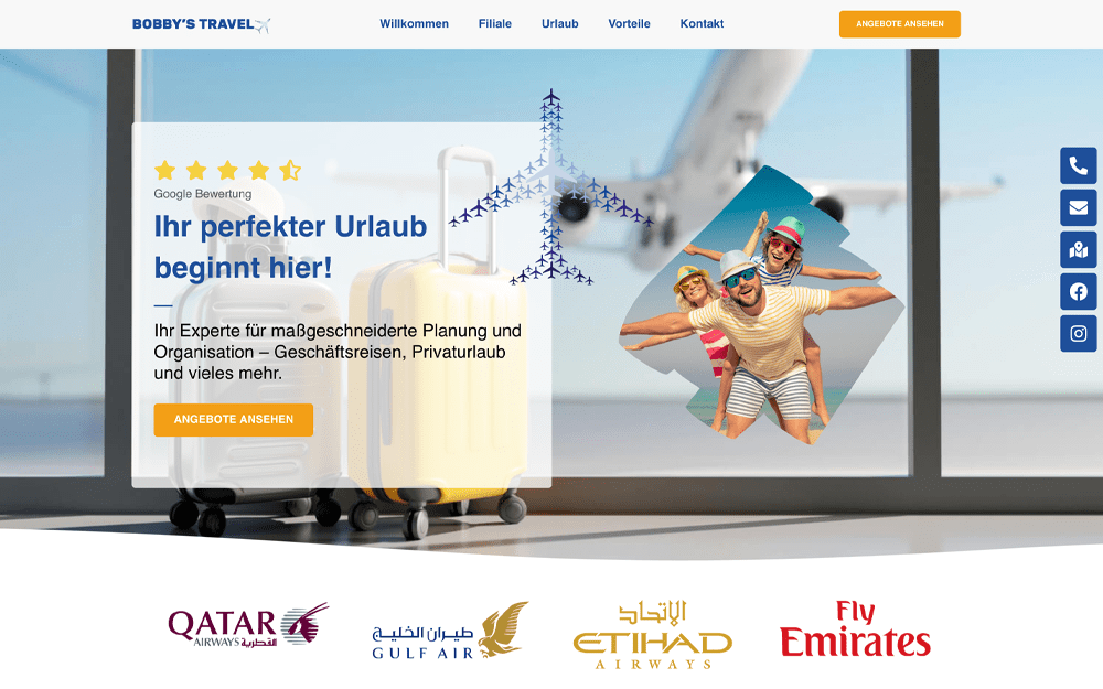 - Präsentiere Angebote, Destinationen und Services übersichtlich – ideal für Anfragen, Beratungstermine und Inspiration.