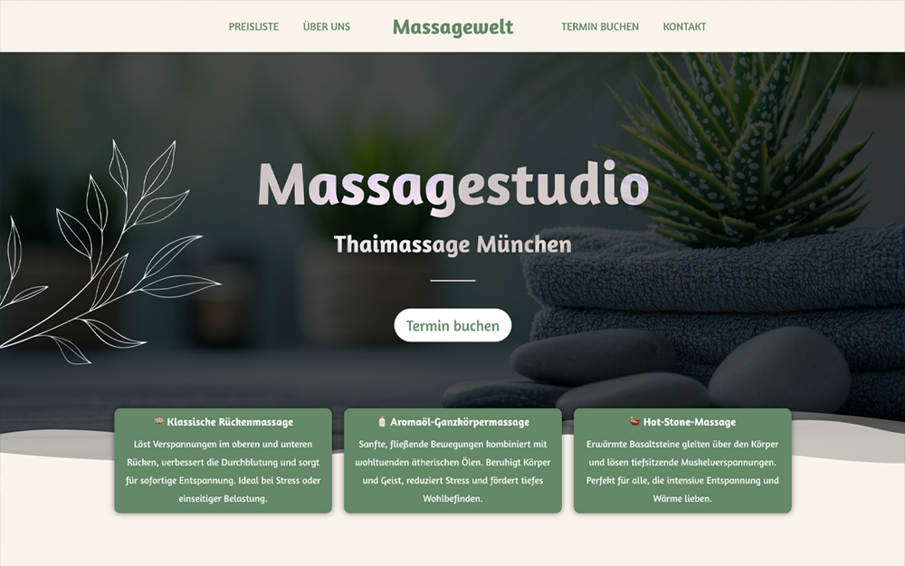 „Ich musste mich um fast nichts kümmern. Ich habe nur meine Infos und ein paar Bilder geschickt und kurze Zeit später war die Website fertig. Das Team war während des ganzen Prozesses erreichbar, hat erklärt, was sie tun, und hat jeden Wunsch umgesetzt. Die Seite sieht nicht nur gut aus, sie funktioniert auch perfekt — gerade die Online-Buchung. Sehr empfehlenswert.“